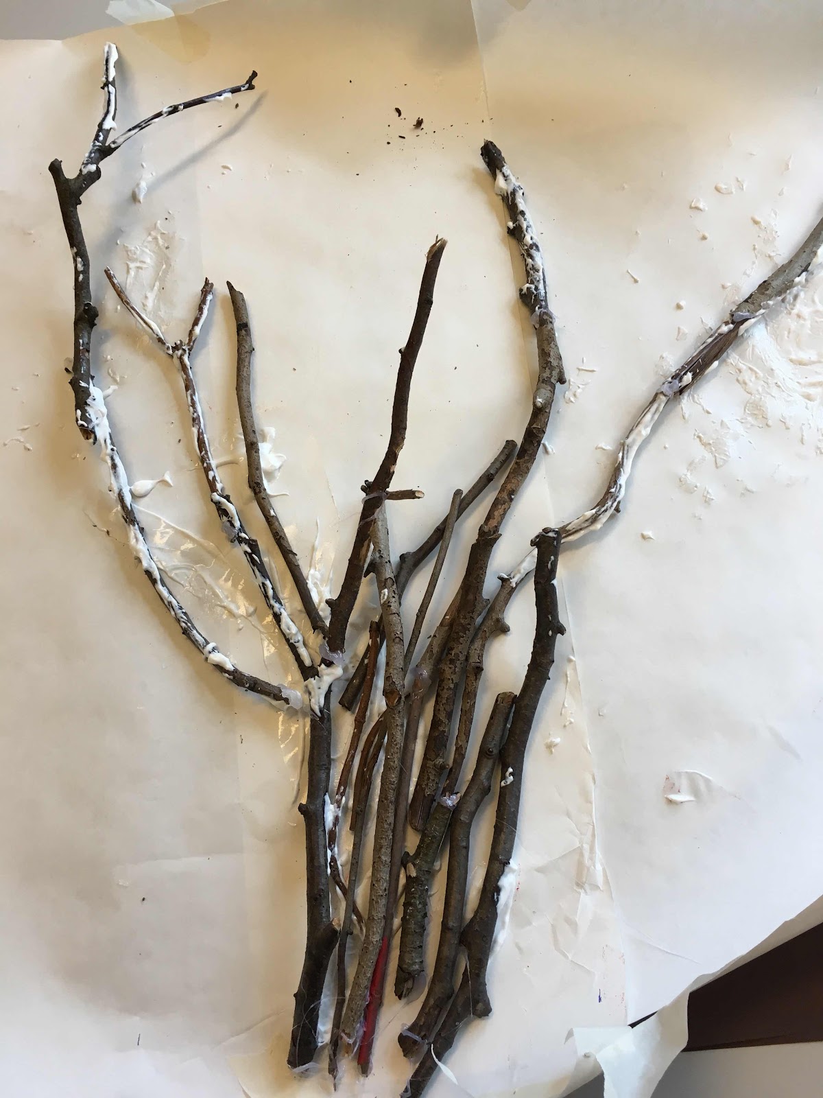 Idag har barnen på älvan klistrat pinnar på ett papper till vårt projekt natur och djur.