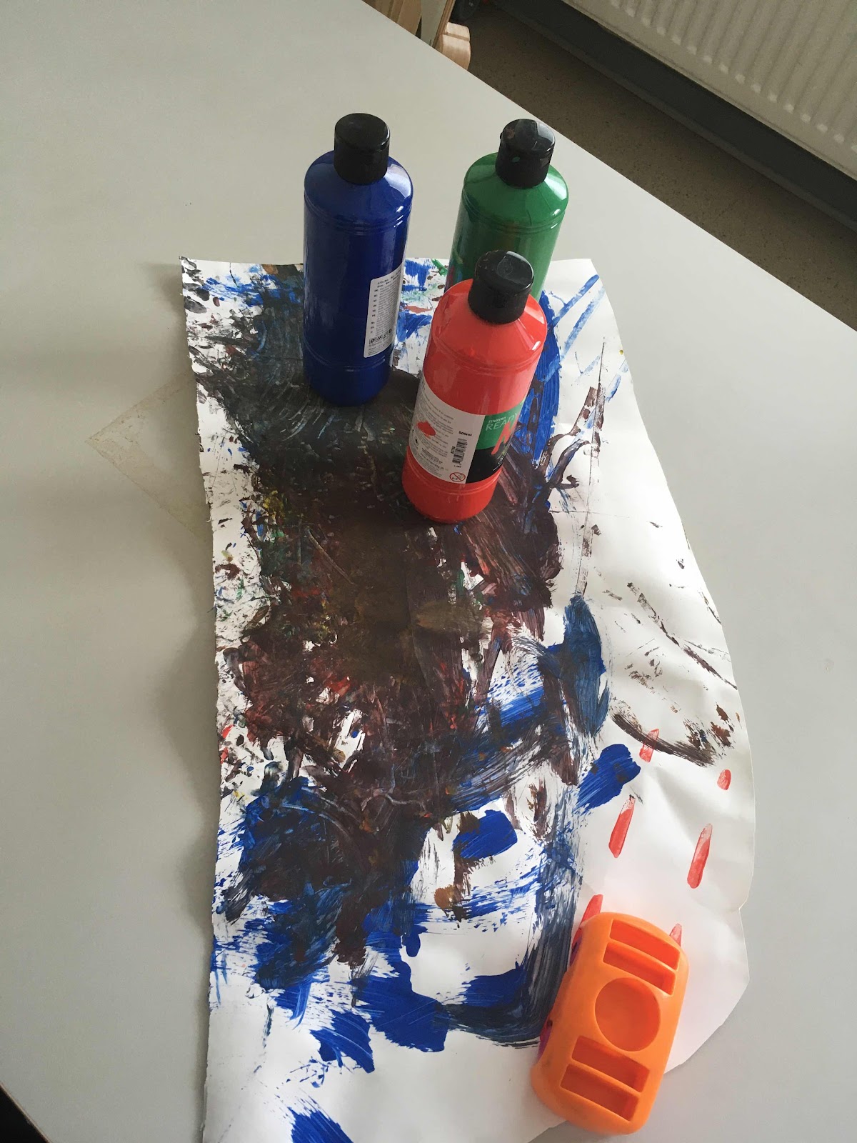 I veckan har barnen målat med hjälp av en bil. Barnen rullade bilen på med målarfärg och de tittade på spåren som kom på pappret. Barnen tyckte att det var spännande och roligt.
